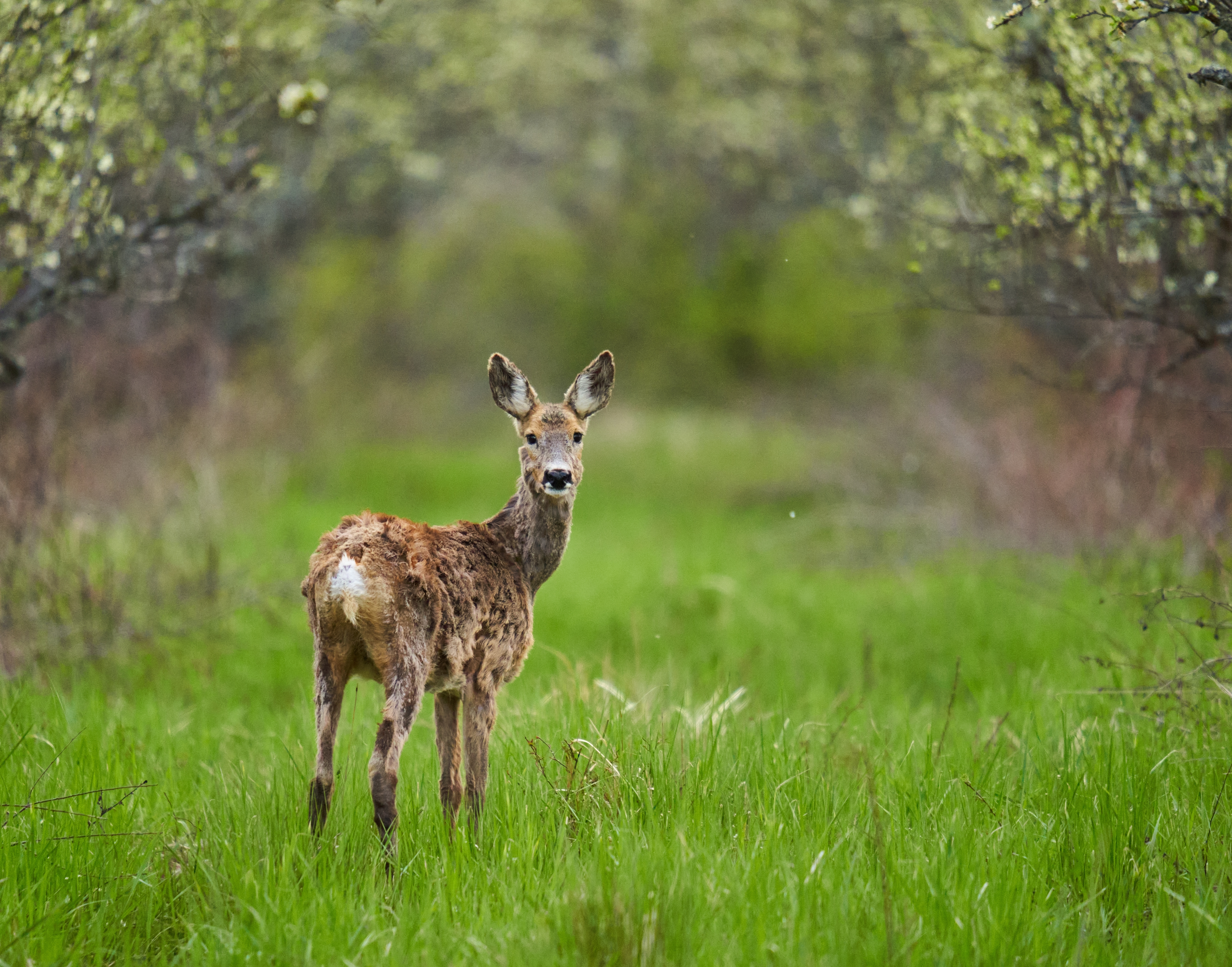 Dermatophilus – Often seen in white-tailed deer. Commonly called Rain Rot, dermatophilus is caused by a fungus that thrives in wet weather. Typical signs include hair loss, matted tufts of hair, and scabs. Dermatophilus is spread by insects, such as biting flies and ticks.