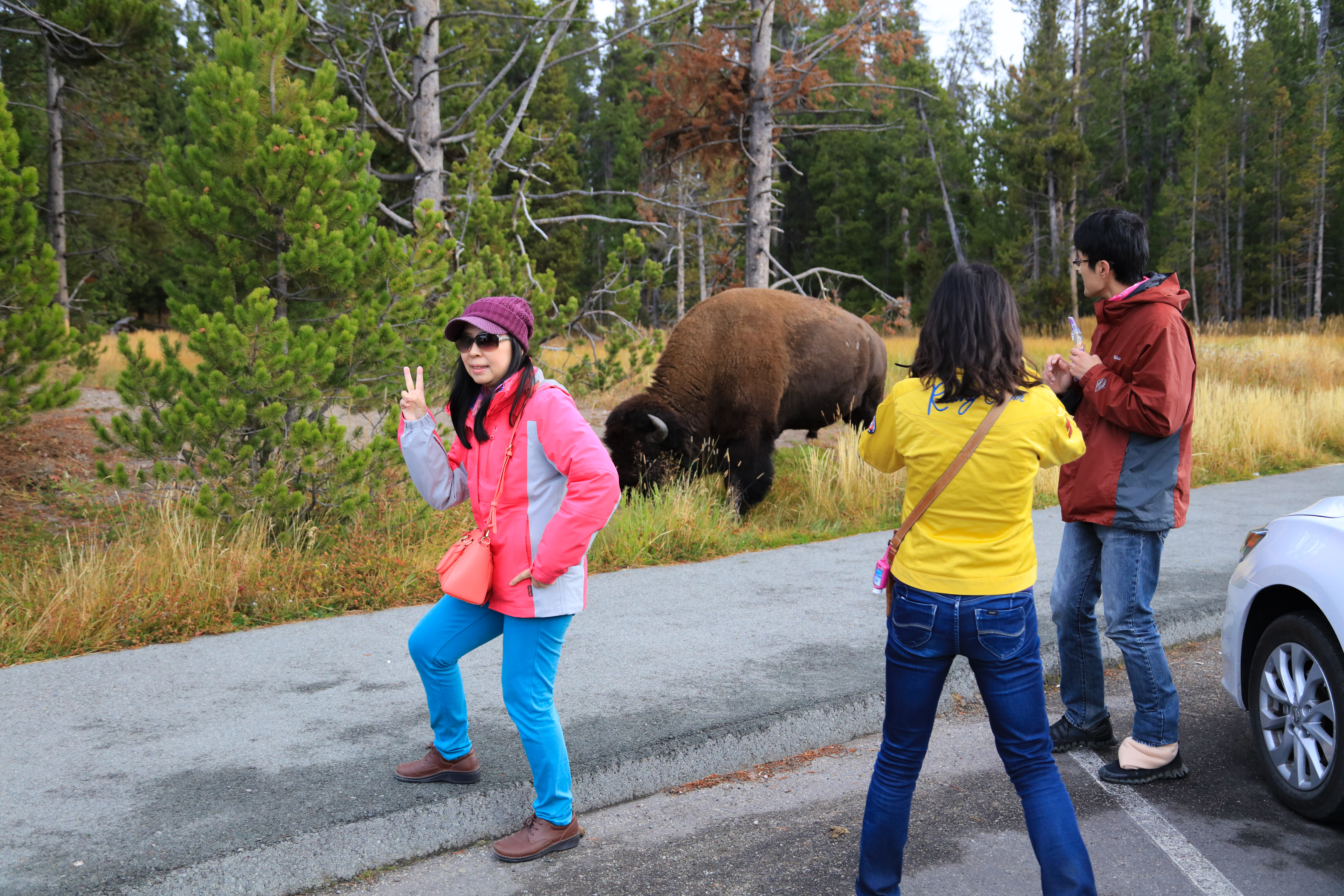 In the US, number five on Yellowstone's "What not to do list" is: do not attempt a selfie with bison, bears, wolves or elk. Many notices and flyers in the park recommend maintaining a minimum distance of 25 yards (75 ft) from bison, and still, in 2015, there were 5 bison-related injuries at Yellowstone in a three-month period.
