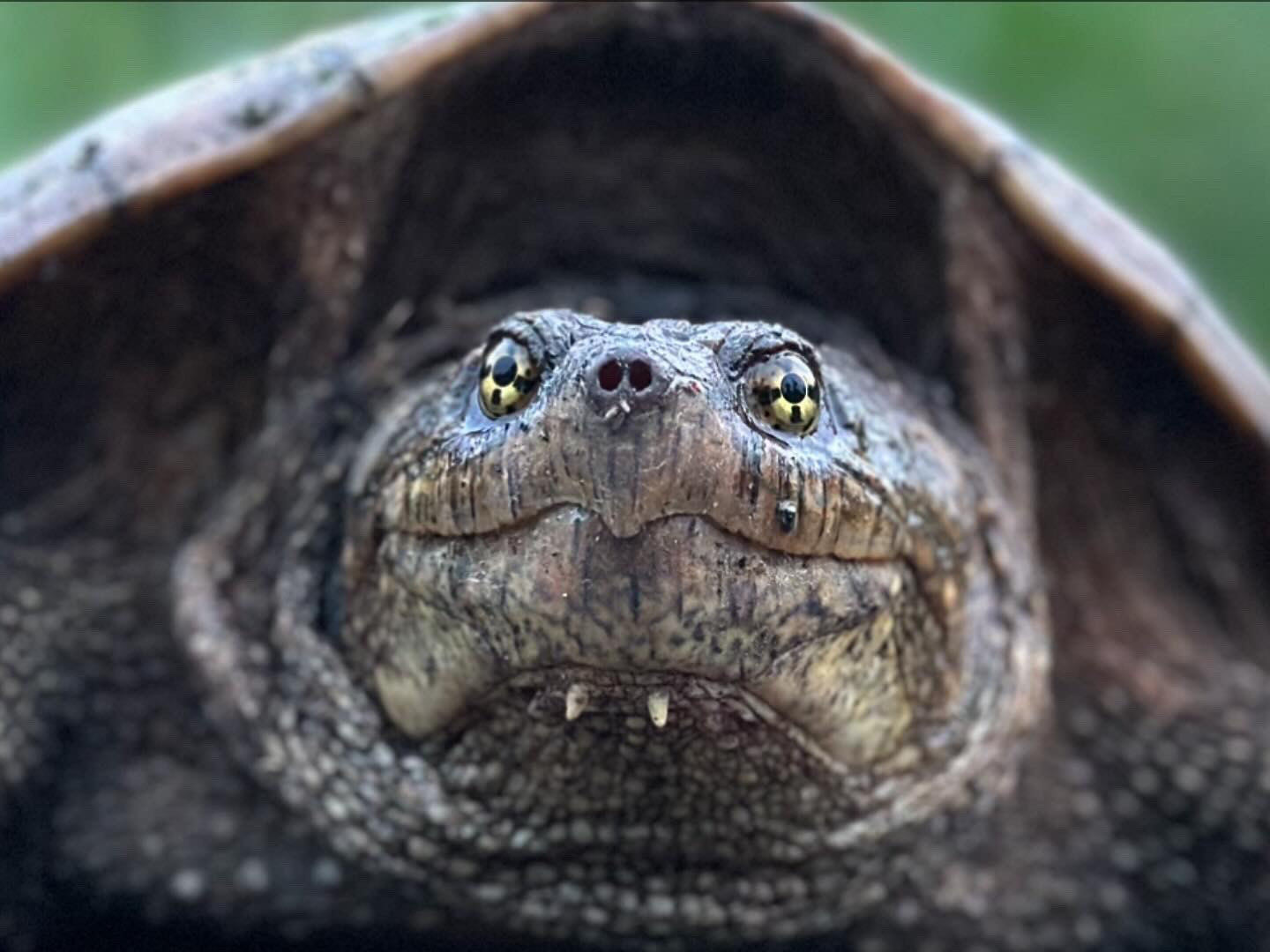 In August of 2023, an alligator snapping turtle (Macrochelys temminckii) was pulled out of the Genesee River in upstate New York by US Fish and Wildlife Service (USFWS) biologists, who were seining (net fishing) for fish. They recognized that she was a different species than our native common snapping turtle (Chelydra serpentina) due to her strongly hooked beak, keeled carapace, and fleshy “eyelashes.” Her species is native to southern and central United States, so this turtle was far out of her normal range and was unlikely to survive long term. Given her presumed hypoxia from an extended stay in the fishing net and the subsequently noted lethargy, she was sent to Cornell’s Janet L Swanson Wildlife Hospital for a health assessment and treatment while New York Department of Environmental Conservation (DEC) biologists evaluated placement options.