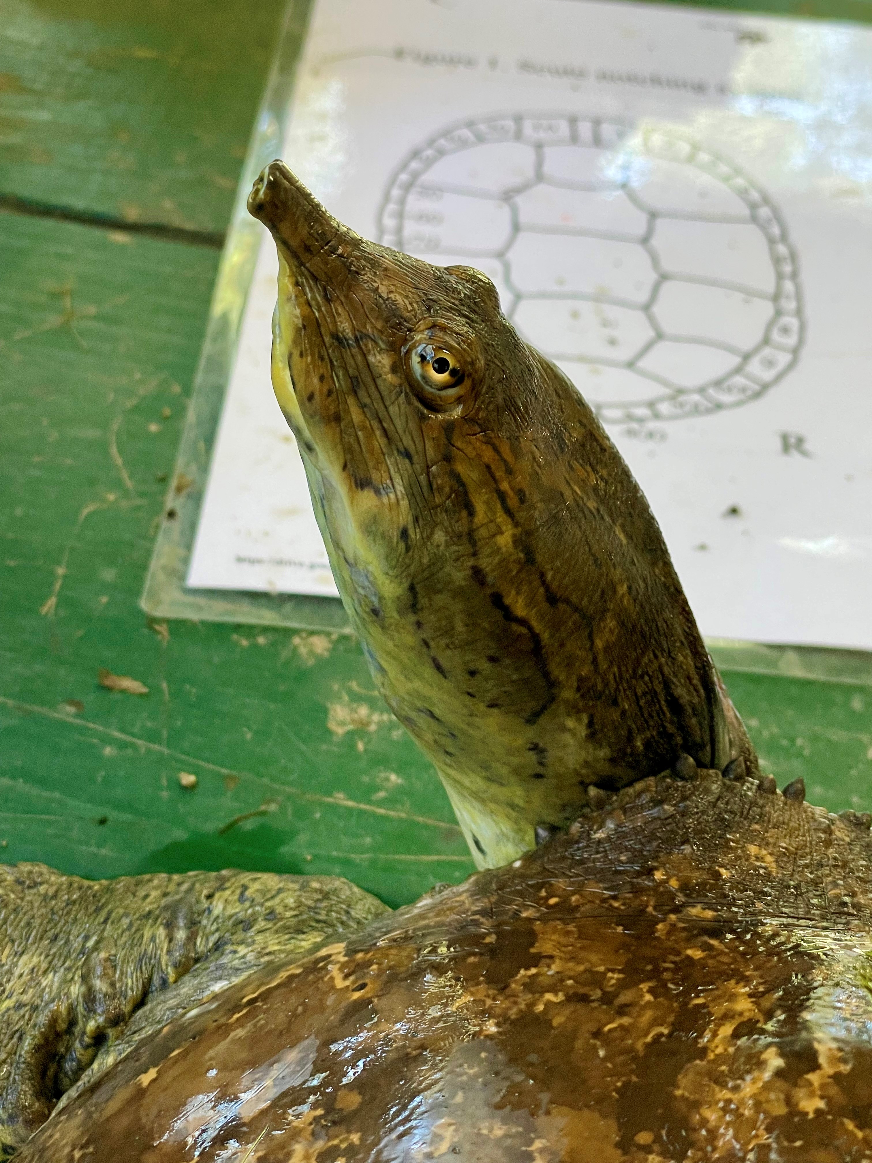 Throughout the three-day event, six ASTs were captured, including five “new” animals and one that had been caught in previous years, adding to a total of 30 ASTs at this survey site. All animals had data taken--measurements, weight, lure color, and notable characteristics like wounds described. Adult females received an ultrasound, performed by longtime collaborator the Environmental Institute of Houston at the University of Houston-Clear Lake, to assess their reproductive status. Once processed, all turtles were released safely at the point of capture.