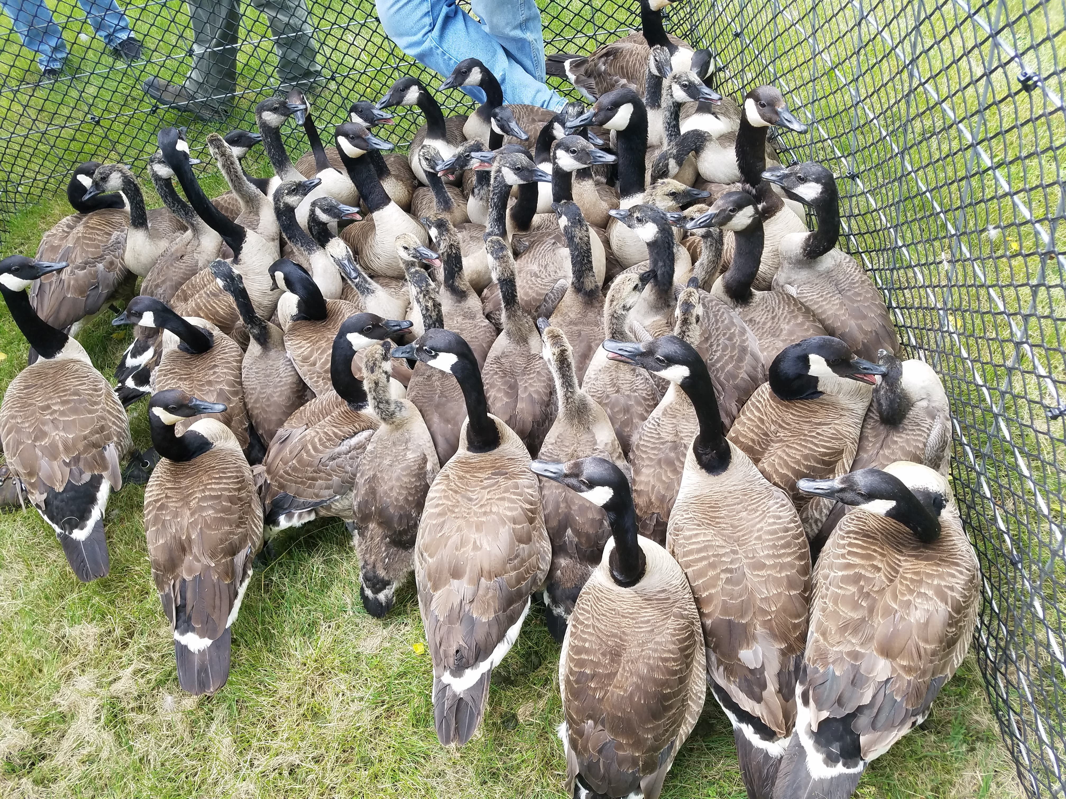 Every June, adult geese lose their flight feathers and regrow them all at once; a process called an eclipse molt. During this 4-5 week period, geese are temporarily unable to fly away! This makes it an ideal time for biologists to collect data. As a training veterinary student, learning proper handling and restraint methods of wild waterfowl is a helpful skill to avoid injury when handling wild birds and it a great opportunity to get more involved in population-level management of wildlife.