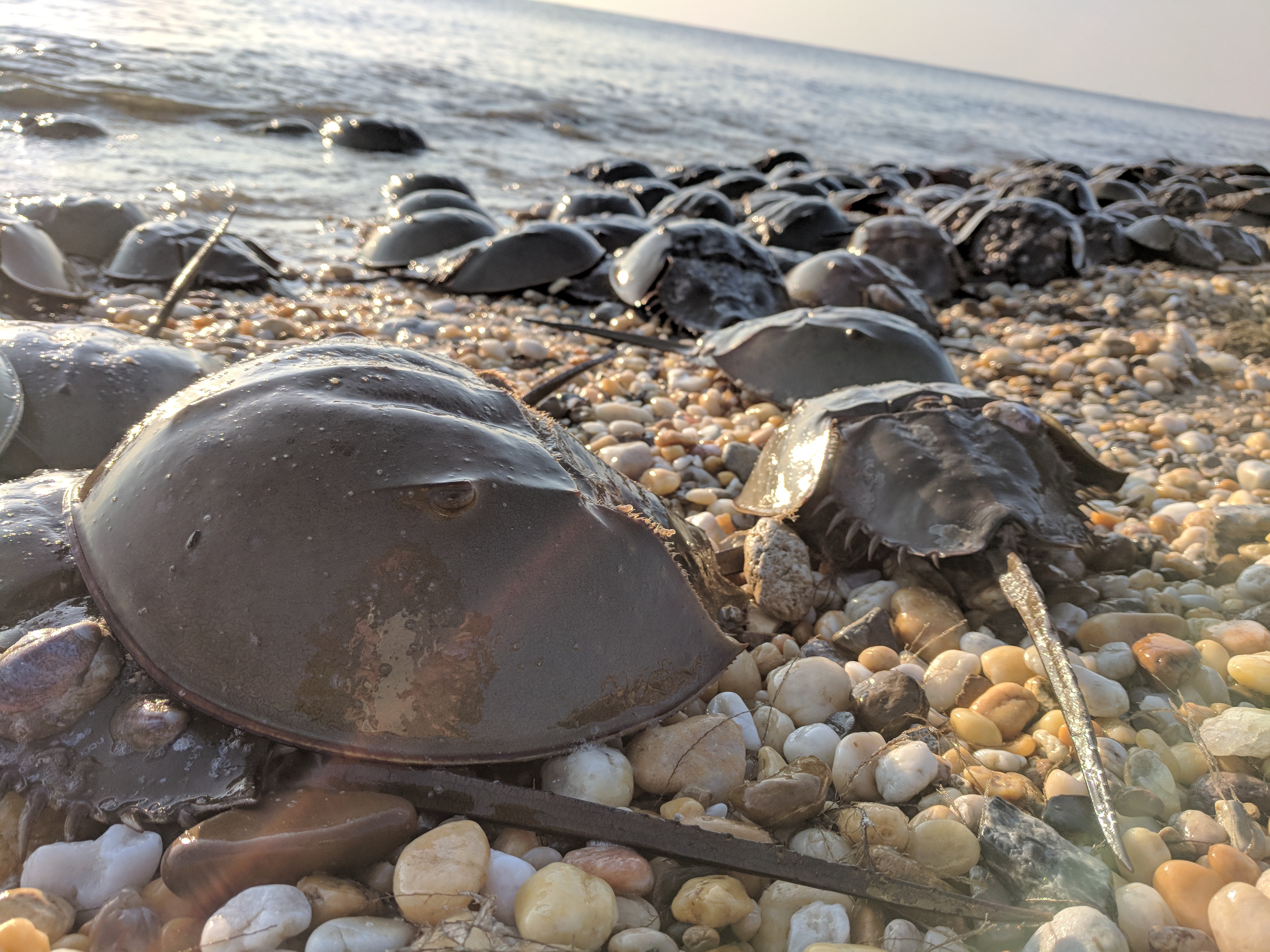 Their nickname is “the living fossil” because have been around a long time –over 300 million years ago, but horseshoe crabs are classified as near threatened on the east coast due to over-harvesting. They are arthropods more closely related to scorpions and spiders than crustaceans like crabs, and they use copper instead of iron to carry oxygen, which turns their blood blue. Their blood is also valuable for human health because it contains Limulus Amebocyte Lysate (LAL) which is used to test intravenous drugs and medical equipment for the presence of bacteria and bacterial toxins. With over-harvesting and population concerns growing, horseshoe crabs used for blood collection are now being returned to the ocean to improve population numbers.