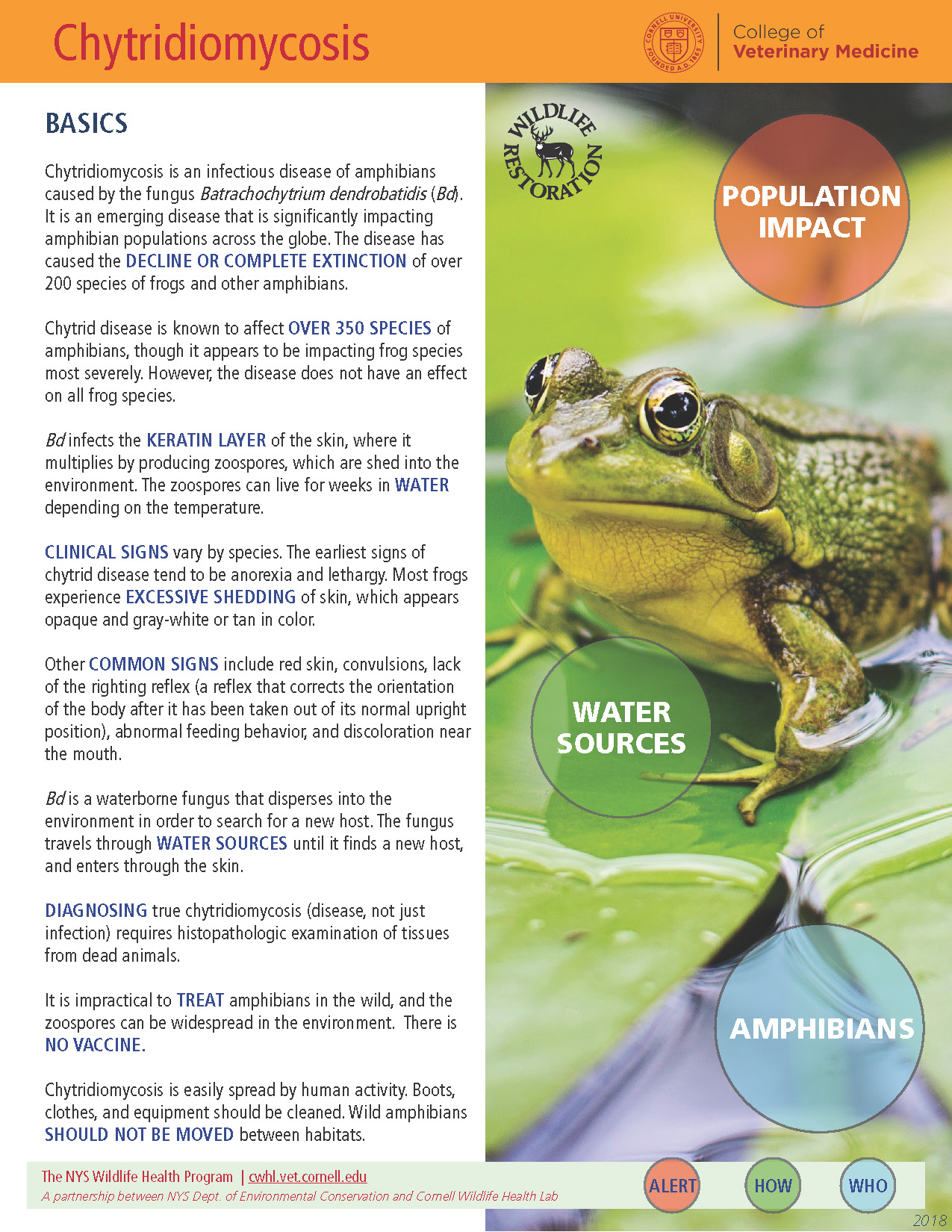 Chytridiomycosis is an infectious disease of amphibians caused by the fungus Batrachochytrium dendrobatidis (Bd). It is an emerging disease that is significantly impacting amphibian populations across the globe. The disease has caused the decline or complete extinction of hundreds of species of frogs and other amphibians.