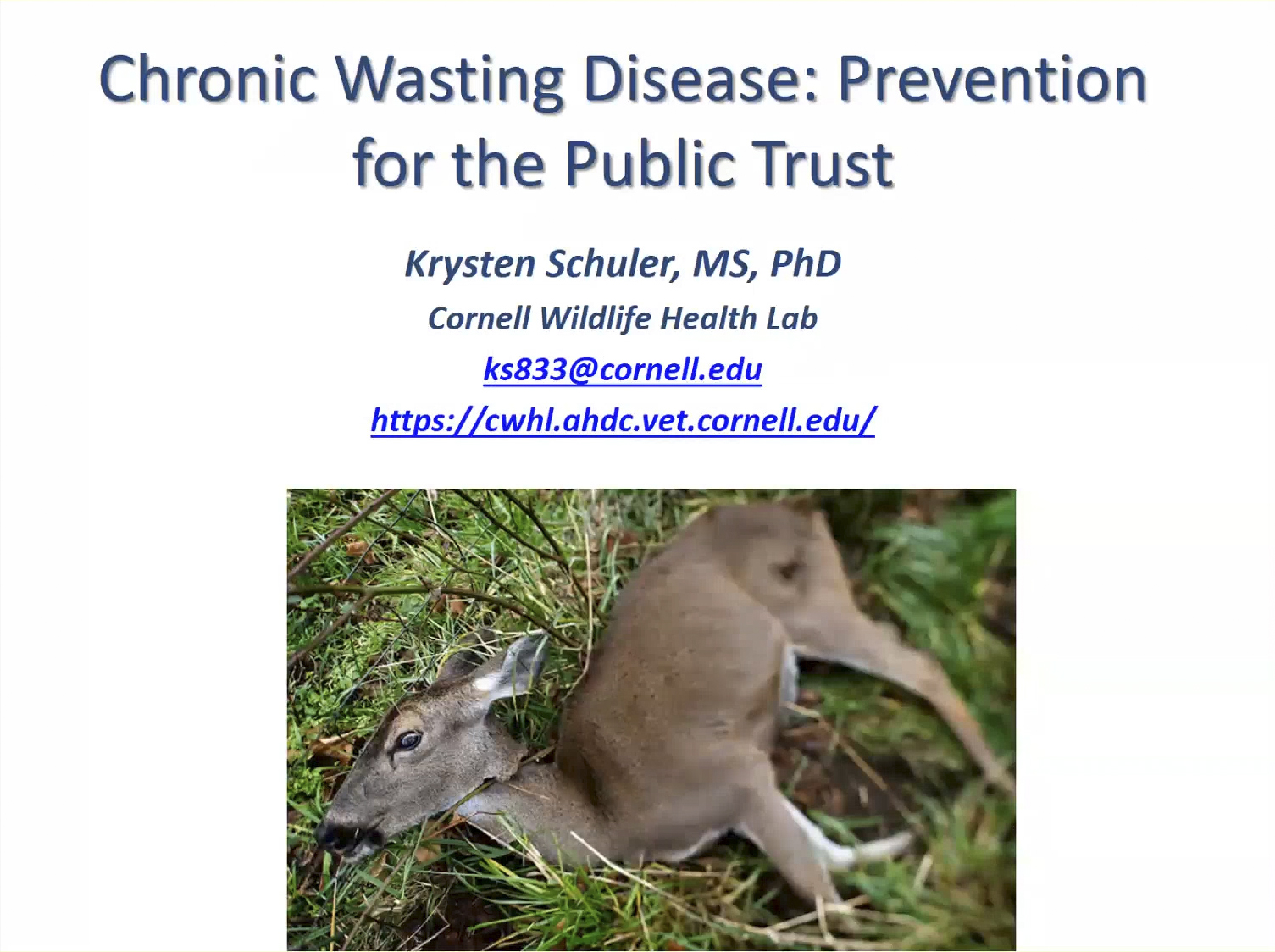 Schuler, K. (2018). CWD Prevention for the Public Trust. NYS Wildlife Health Program. https://cwhl.vet.cornell.edu/resource/cwd-prevention-public-trust. Accessed Date: January 23, 2026.