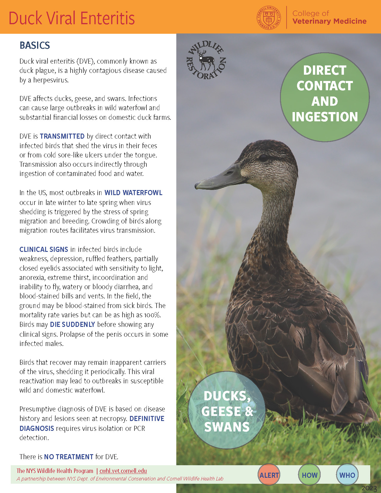 Outbreaks of DVE also occur among backyard waterfowl flocks, zoos, and nonmigratory resident wild waterfowl.
