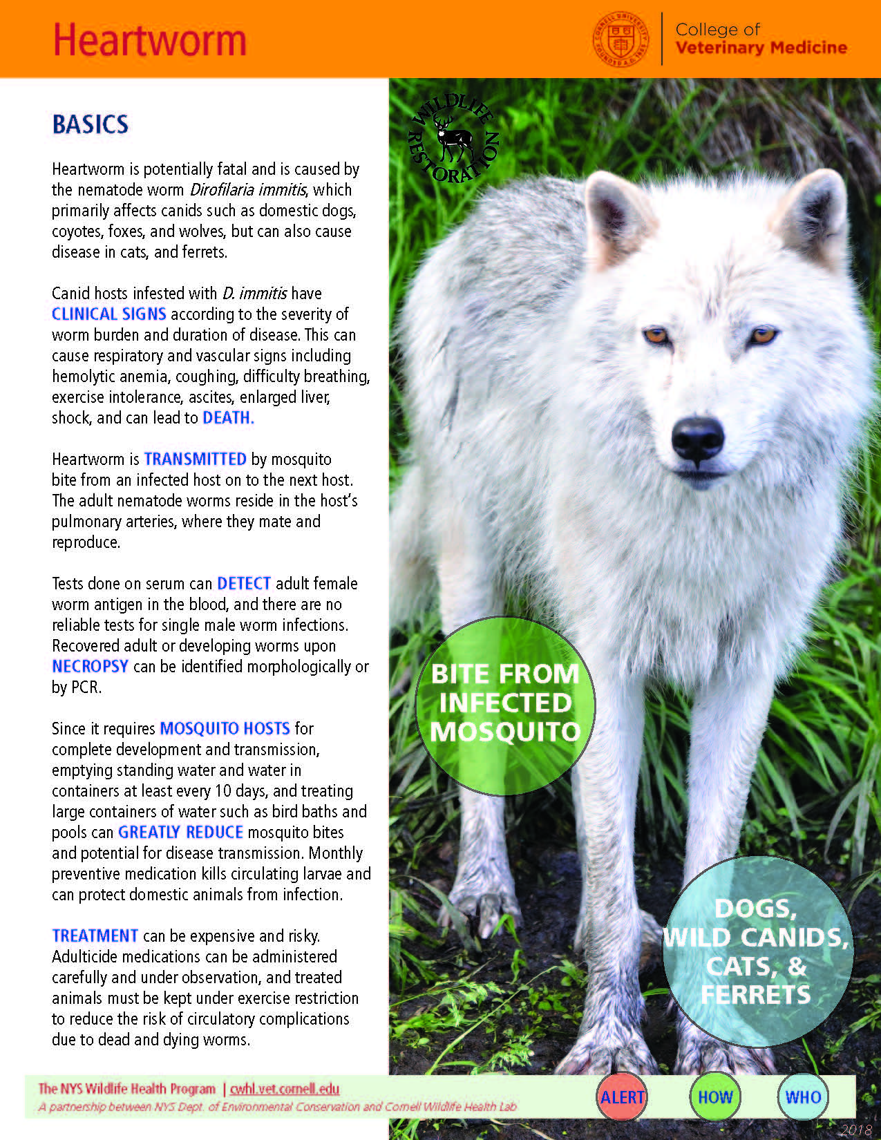 Heartworm is potentially fatal and is caused by the nematode worm Dirofilaria immitis, which primarily affects canids such as domestic dogs, coyotes, foxes, and wolves, but can also cause disease in cats, and ferrets.