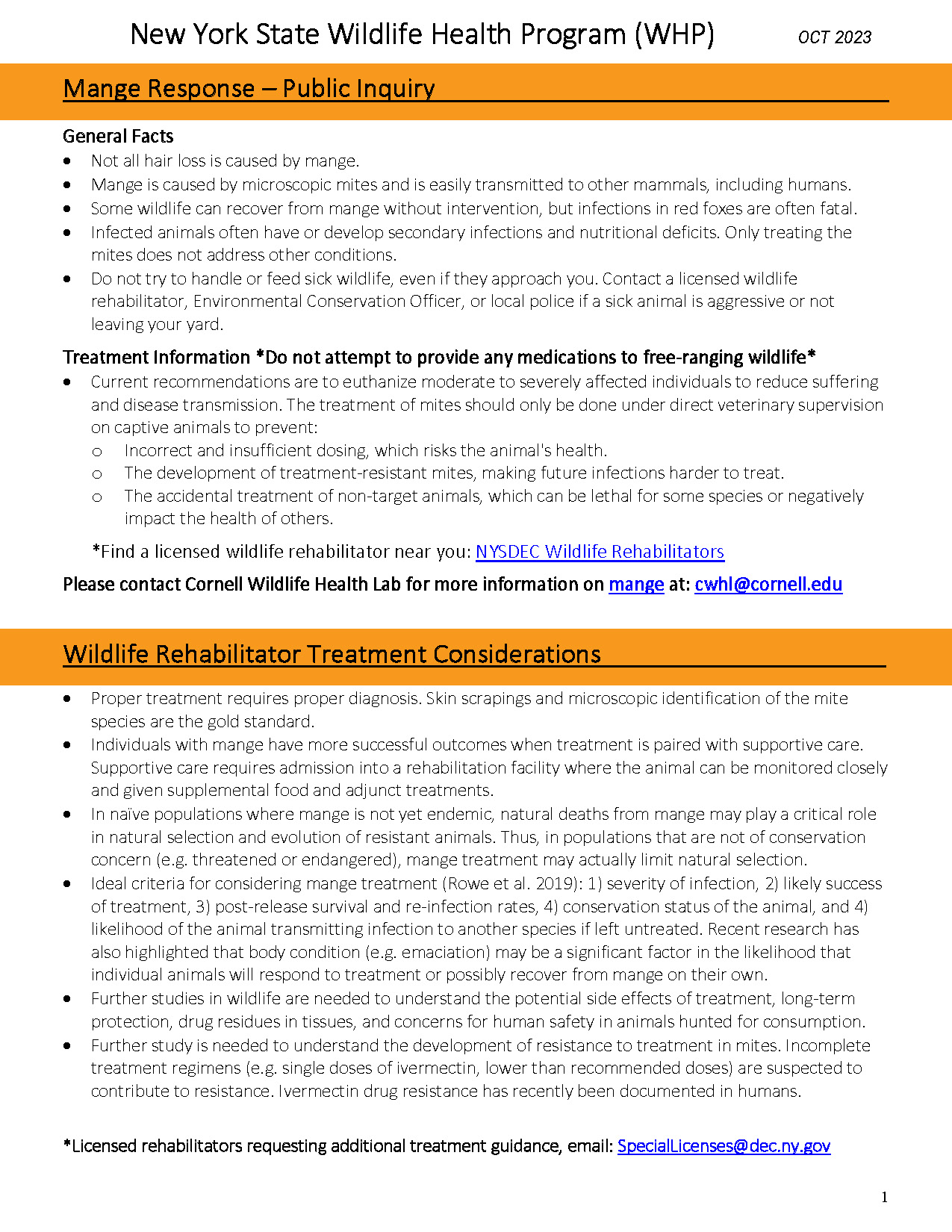 *Licensed rehabilitators requesting additional treatment guidance, email: SpecialLicenses@dec.ny.gov