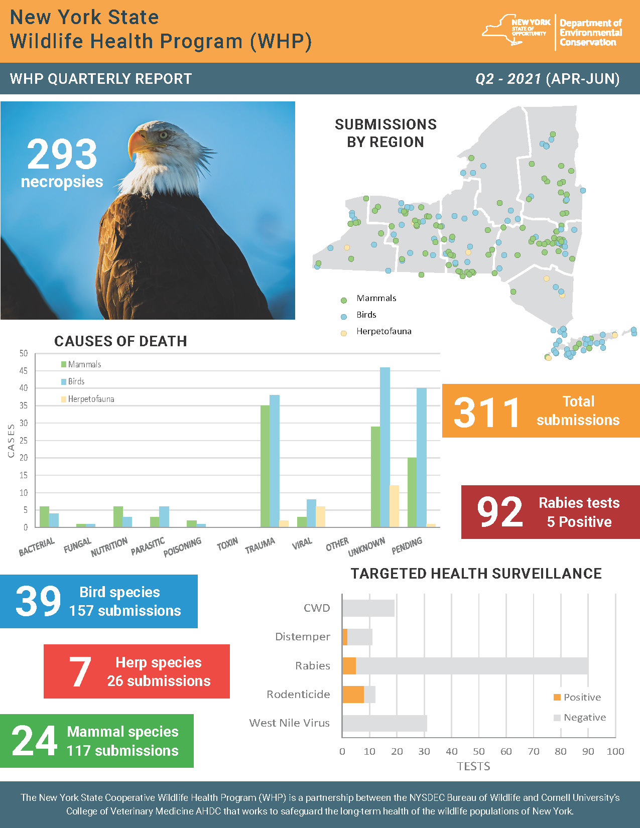 whp-newsletter-q2-2021_jlp.pdf 930.48 KB Resource Details Title: NYS WHP Quarterly Report Q2 2021Author: Jennifer PeasleeJennifer PeasleeSource: NYS Wildlife Health ProgramStaff involved: Krysten Schuler, Jennifer Peaslee, Nicholas HollingsheadCitation: Jennifer Peaslee. (2026). NYS WHP Quarterly Report Q2 2021. NYS Wildlife Health Program. https://cwhl.vet.cornell.edu/resource/nys-whp-quarterly-report-q2-2021. Accessed Date: January 23, 2026.
