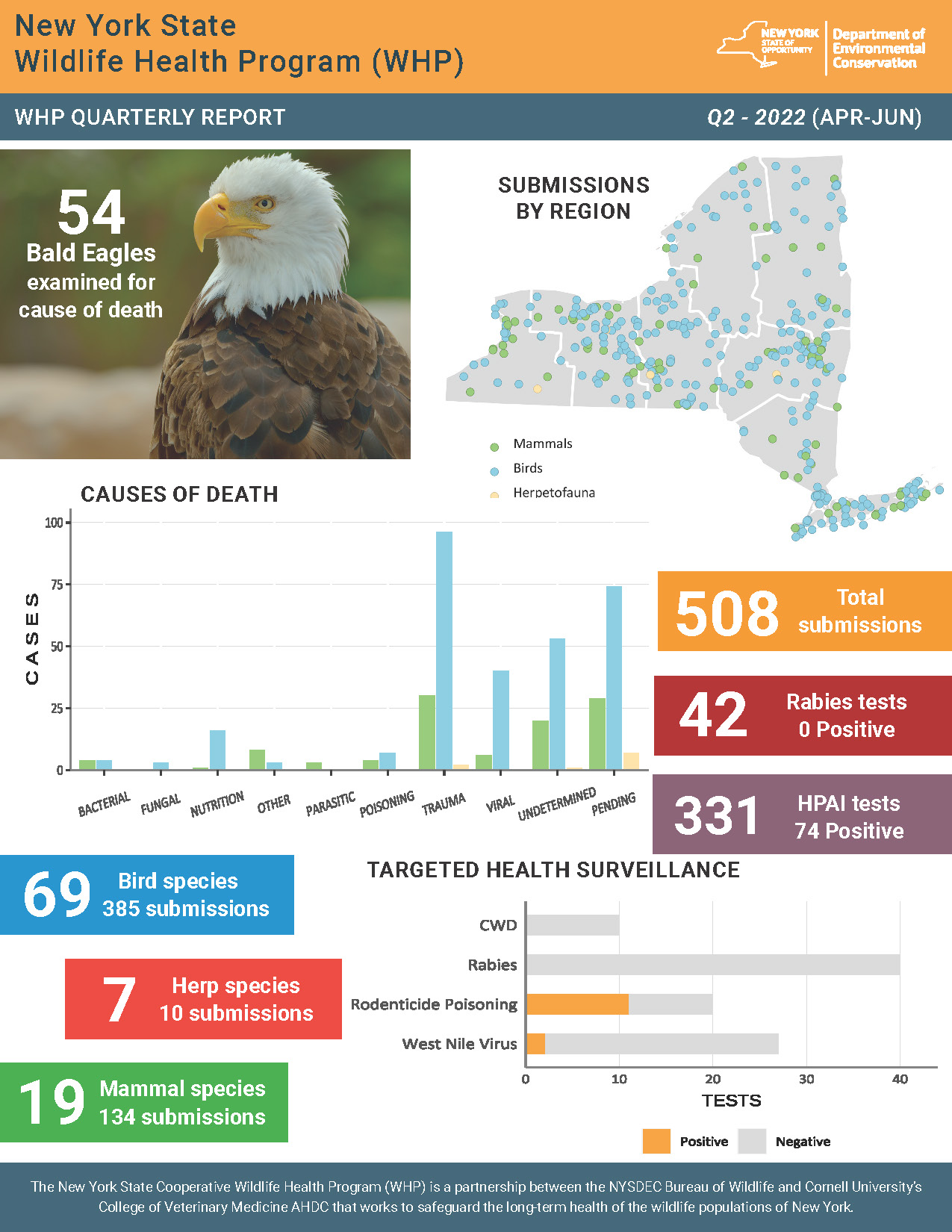 whp-newsletter-q2-2022_jlp.pdf 1.36 MB Resource Details Title: NYS WHP Quarterly Report Q2 2022Author: Jennifer PeasleeJennifer PeasleeSource: NYS Wildlife Health ProgramStaff involved: Krysten Schuler, Jennifer Peaslee, Nicholas HollingsheadCitation: Jennifer Peaslee. (2026). NYS WHP Quarterly Report Q2 2022. NYS Wildlife Health Program. https://cwhl.vet.cornell.edu/resource/nys-whp-quarterly-report-q2-2022. Accessed Date: January 23, 2026.