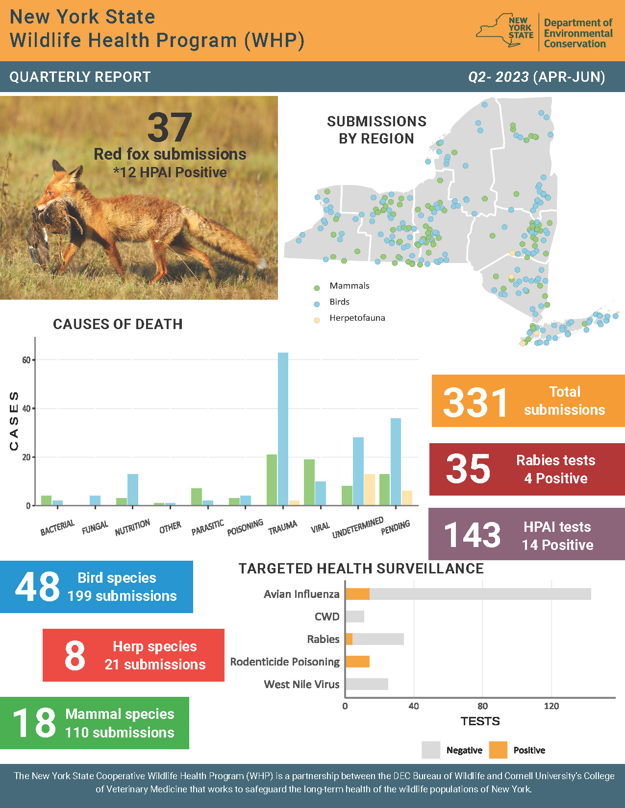 whp-newsletter-q2-2023_jlp1.pdf 1.21 MB Resource Details Title: NYS WHP Quarterly Report Q2 2023Author: Jennifer PeasleeJennifer PeasleeSource: NYS Wildlife Health ProgramStaff involved: Krysten Schuler, Jennifer Peaslee, Nicholas HollingsheadCitation: Jennifer Peaslee. (2026). NYS WHP Quarterly Report Q2 2023. NYS Wildlife Health Program. https://cwhl.vet.cornell.edu/resource/nys-whp-quarterly-report-q2-2023. Accessed Date: January 23, 2026.