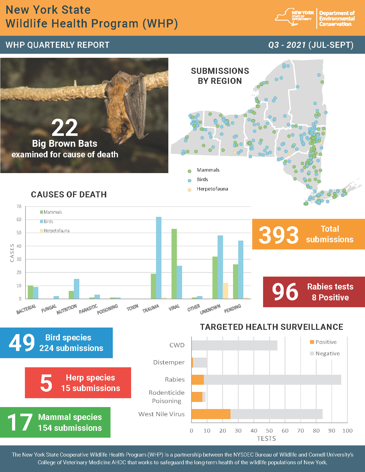 whp-newsletter-q3-2021_jlp.pdf 917.4 KB Resource Details Title: NYS WHP Quarterly Report Q3 2021Author: Jennifer PeasleeJennifer PeasleeSource: NYS Wildlife Health ProgramStaff involved: Krysten Schuler, Jennifer Peaslee, Nicholas HollingsheadCitation: Jennifer Peaslee. (2026). NYS WHP Quarterly Report Q3 2021. NYS Wildlife Health Program. https://cwhl.vet.cornell.edu/resource/nys-whp-quarterly-report-q3-2021. Accessed Date: January 23, 2026.