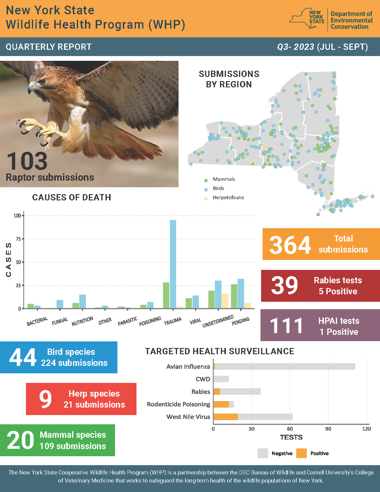 whp-newsletter-q3-2023_jlp.pdf 1.18 MB Resource Details Title: NYS WHP Quarterly Report Q3 2023Author: Jennifer PeasleeJennifer PeasleeSource: NYS Wildlife Health ProgramStaff involved: Krysten Schuler, Jennifer Peaslee, Nicholas HollingsheadCitation: Jennifer Peaslee. (2026). NYS WHP Quarterly Report Q3 2023. NYS Wildlife Health Program. https://cwhl.vet.cornell.edu/resource/nys-whp-quarterly-report-q3-2023. Accessed Date: January 23, 2026.