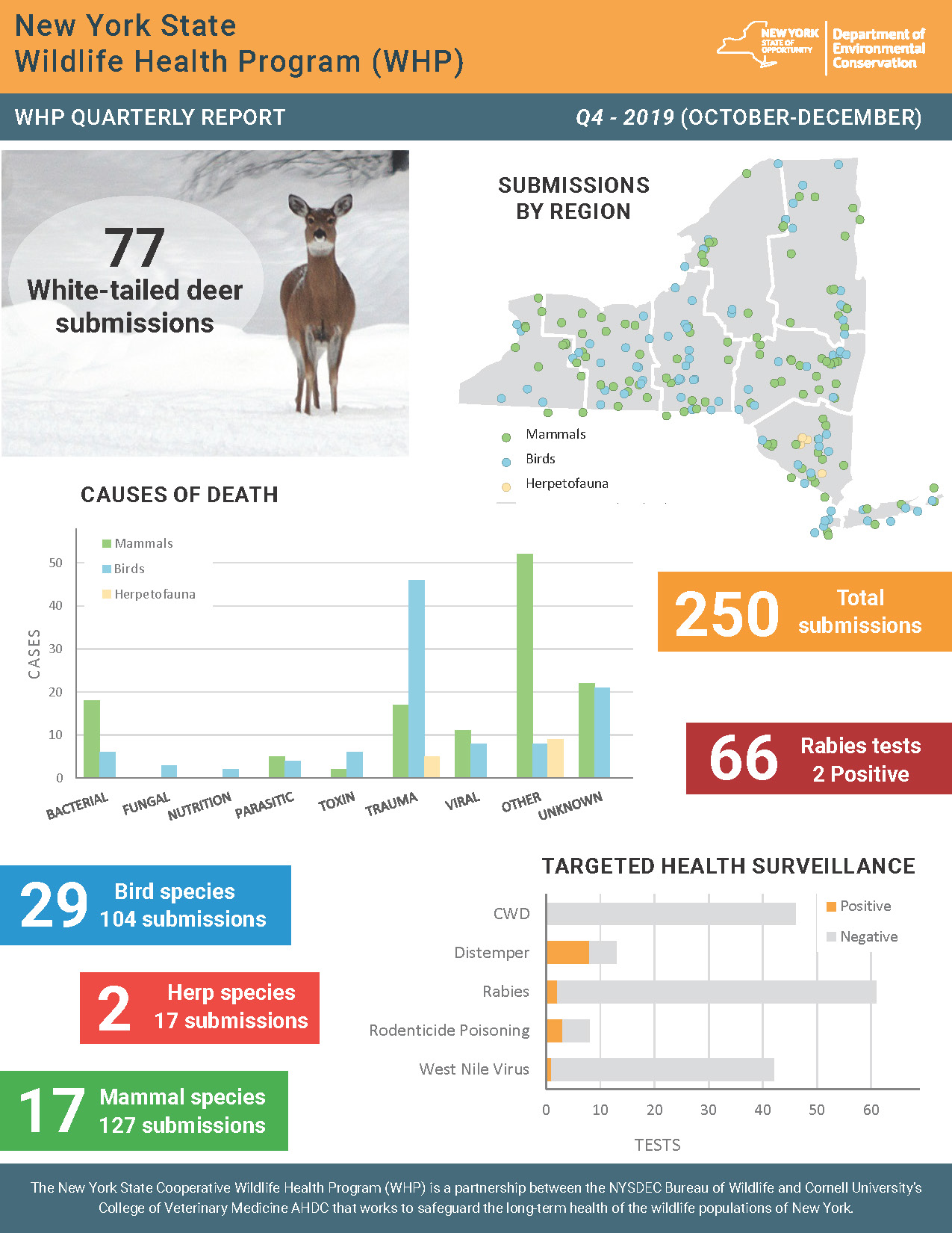 whp-newsletter-q4-2019_jlp.pdf 815.87 KB Resource Details Title: NYS WHP Quarterly Report Q4 2019Author: Jennifer PeasleeJennifer PeasleeSource: NYS Wildlife Health ProgramStaff involved: Krysten Schuler, Jennifer Peaslee, Nicholas HollingsheadCitation: Jennifer Peaslee. (2026). NYS WHP Quarterly Report Q4 2019. NYS Wildlife Health Program. https://cwhl.vet.cornell.edu/resource/nys-whp-quarterly-report-q4-2019. Accessed Date: January 23, 2026.