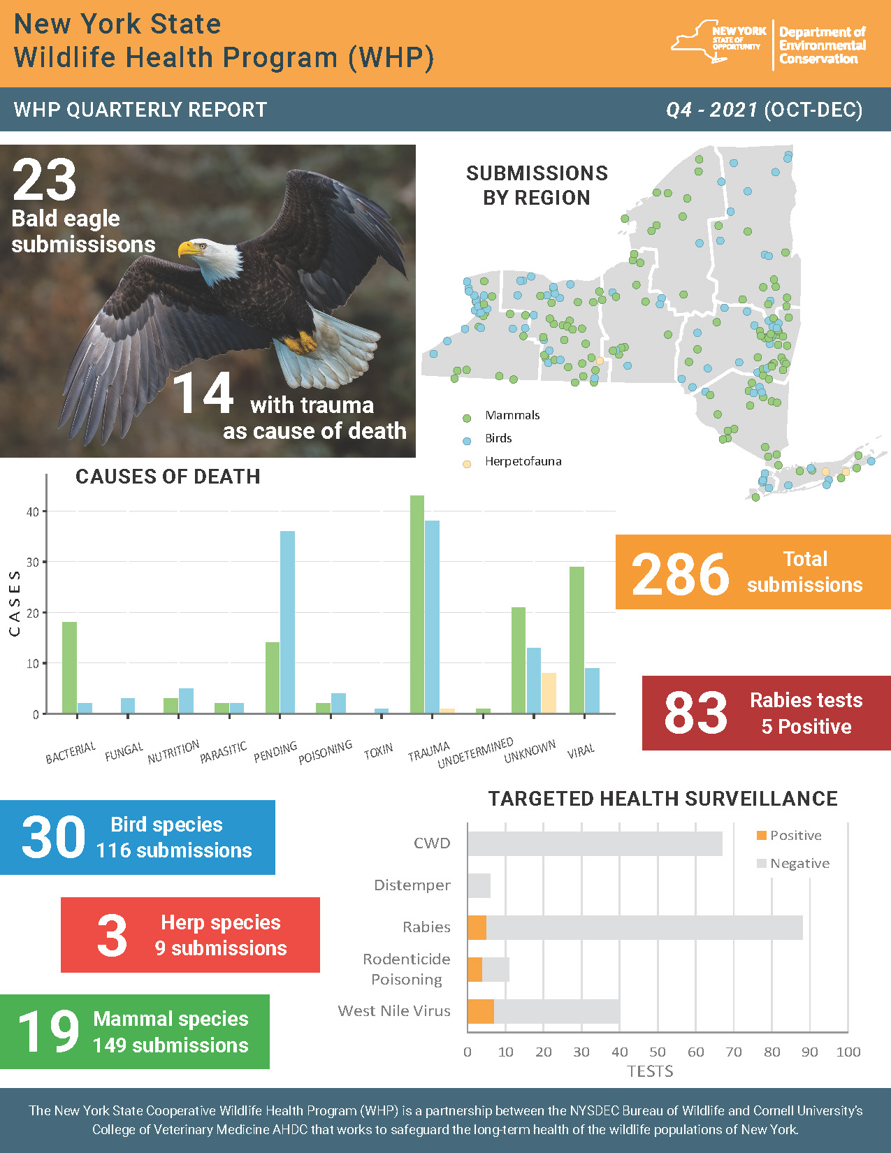 whp-q4-2021_jlp.pdf 822.86 KB Resource Details Title: NYS WHP Quarterly Report Q4 2021Author: Jennifer PeasleeJennifer PeasleeSource: NYS Wildlife Health ProgramStaff involved: Krysten Schuler, Jennifer Peaslee, Nicholas HollingsheadCitation: Jennifer Peaslee. (2026). NYS WHP Quarterly Report Q4 2021. NYS Wildlife Health Program. https://cwhl.vet.cornell.edu/resource/nys-whp-quarterly-report-q4-2021. Accessed Date: January 23, 2026.