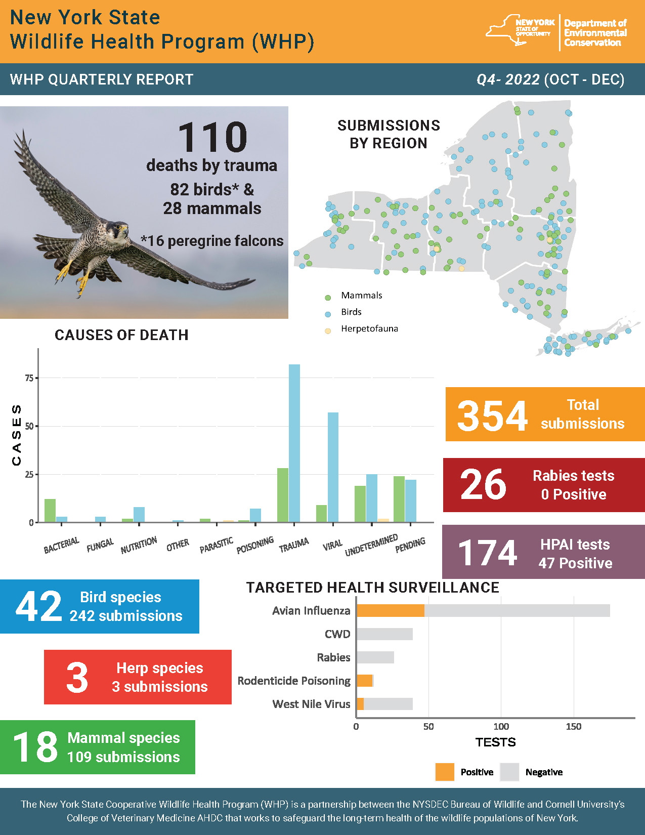whp-newsletter-q4-2022_jlp.pdf 996.99 KB Resource Details Title: NYS WHP Quarterly Report Q4 2022Author: Jennifer PeasleeJennifer PeasleeSource: NYS Wildlife Health ProgramStaff involved: Krysten Schuler, Jennifer Peaslee, Nicholas HollingsheadCitation: Jennifer Peaslee. (2026). NYS WHP Quarterly Report Q4 2022. NYS Wildlife Health Program. https://cwhl.vet.cornell.edu/resource/nys-whp-quarterly-report-q4-2022. Accessed Date: January 23, 2026.