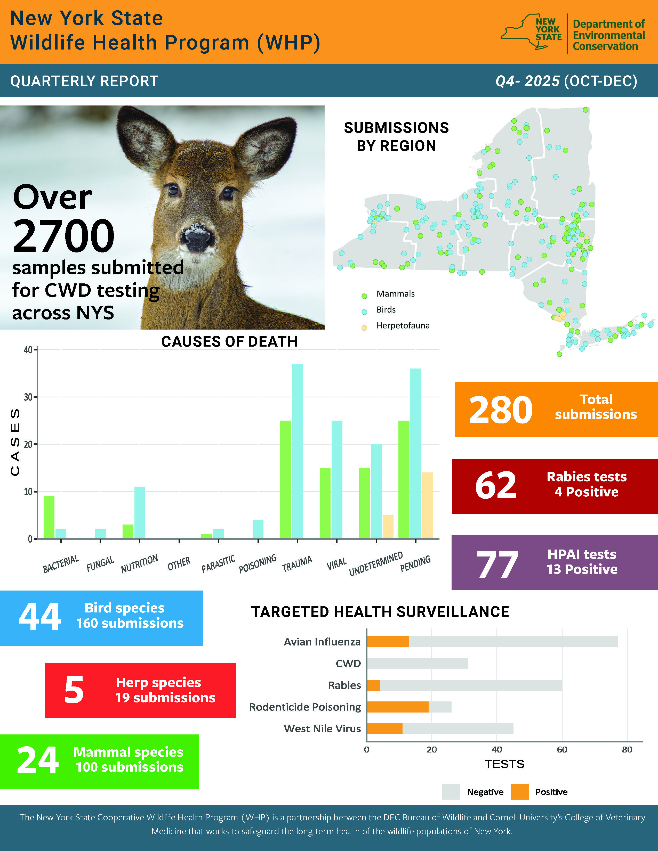 24 Mammal species across 100 submissions - *over 2700 samples submitted for CWD testing across NYS