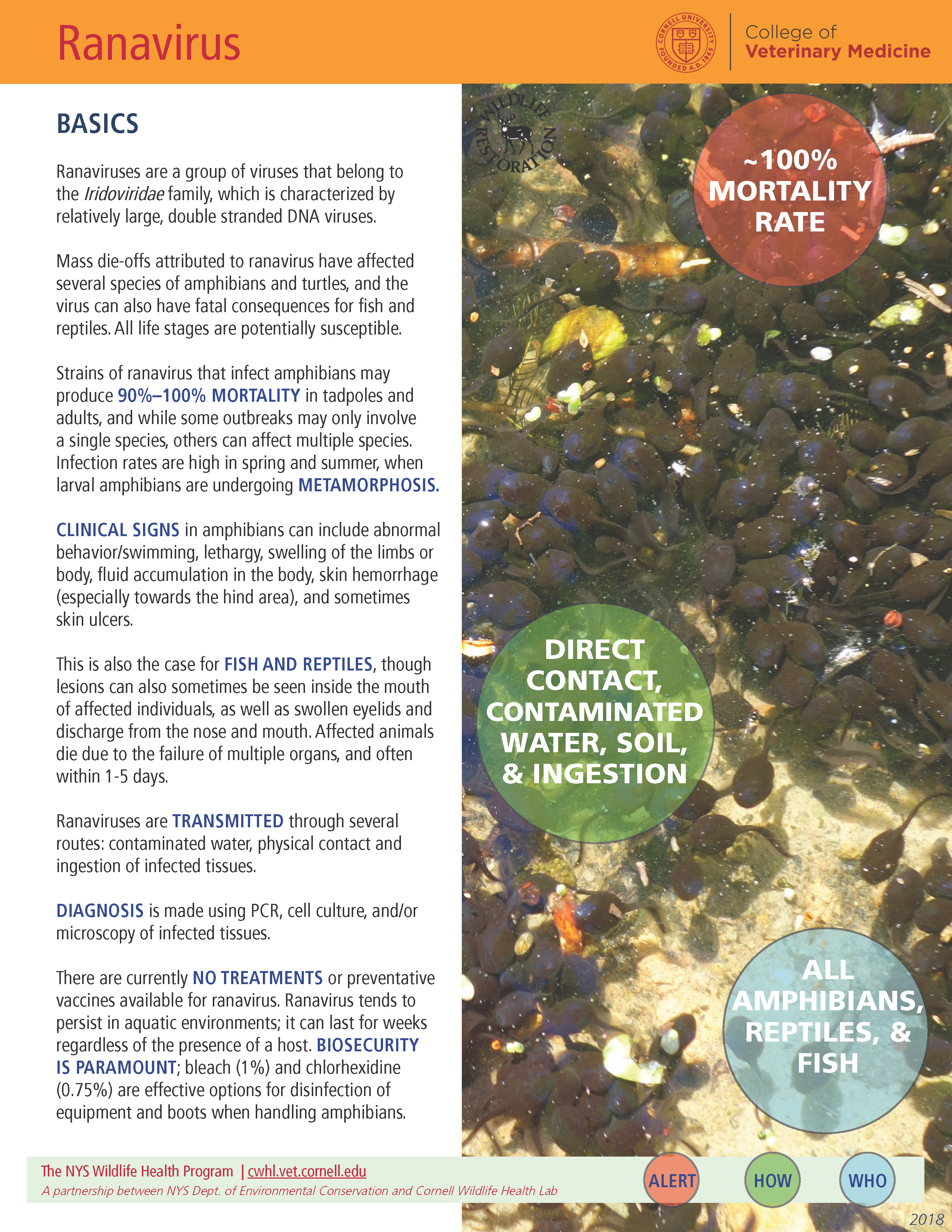 Mass die-offs attributed to ranavirus have affected several species of amphibians and turtles, and the virus can also have fatal consequences for fish and reptiles. All life stages are potentially susceptible.