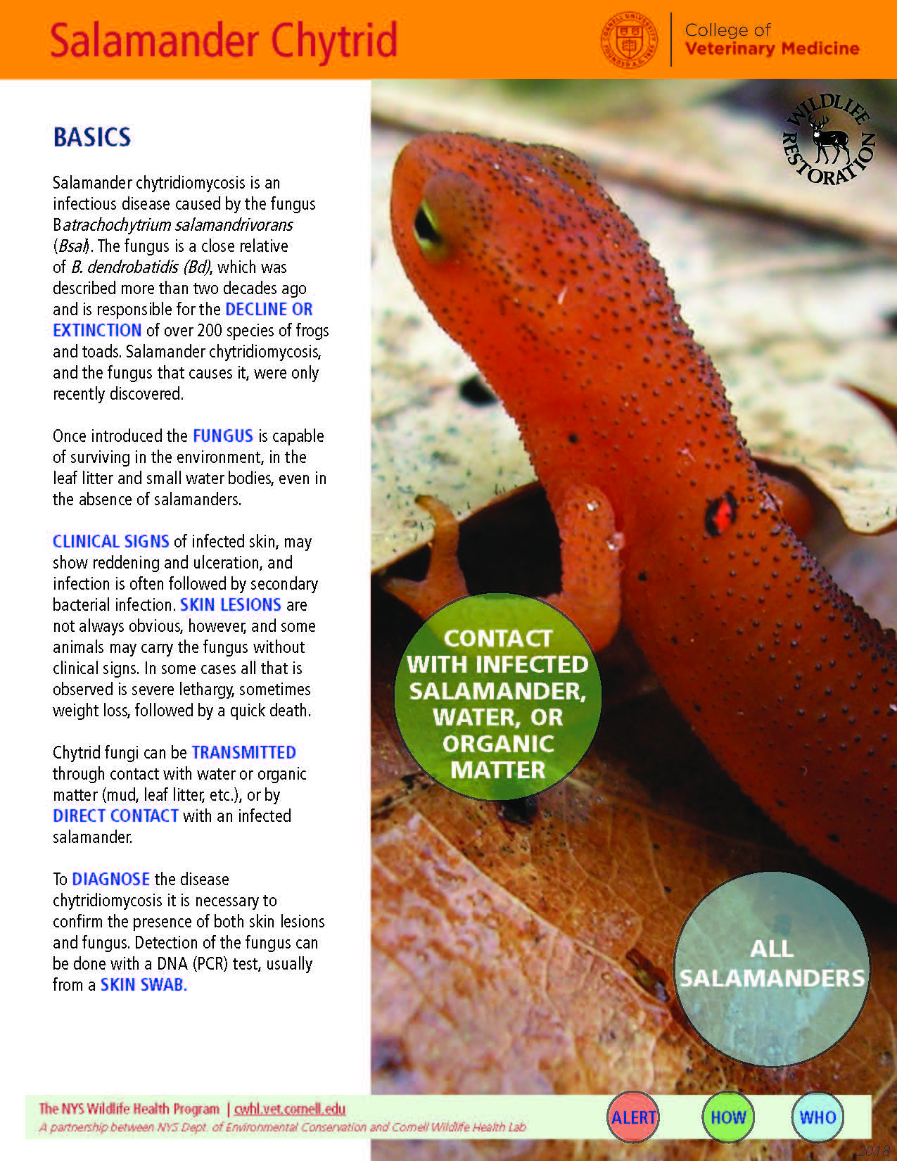 Suspicious deaths of salamanders both in the wild and in captivity should be reported to enable early detection of this disease.
