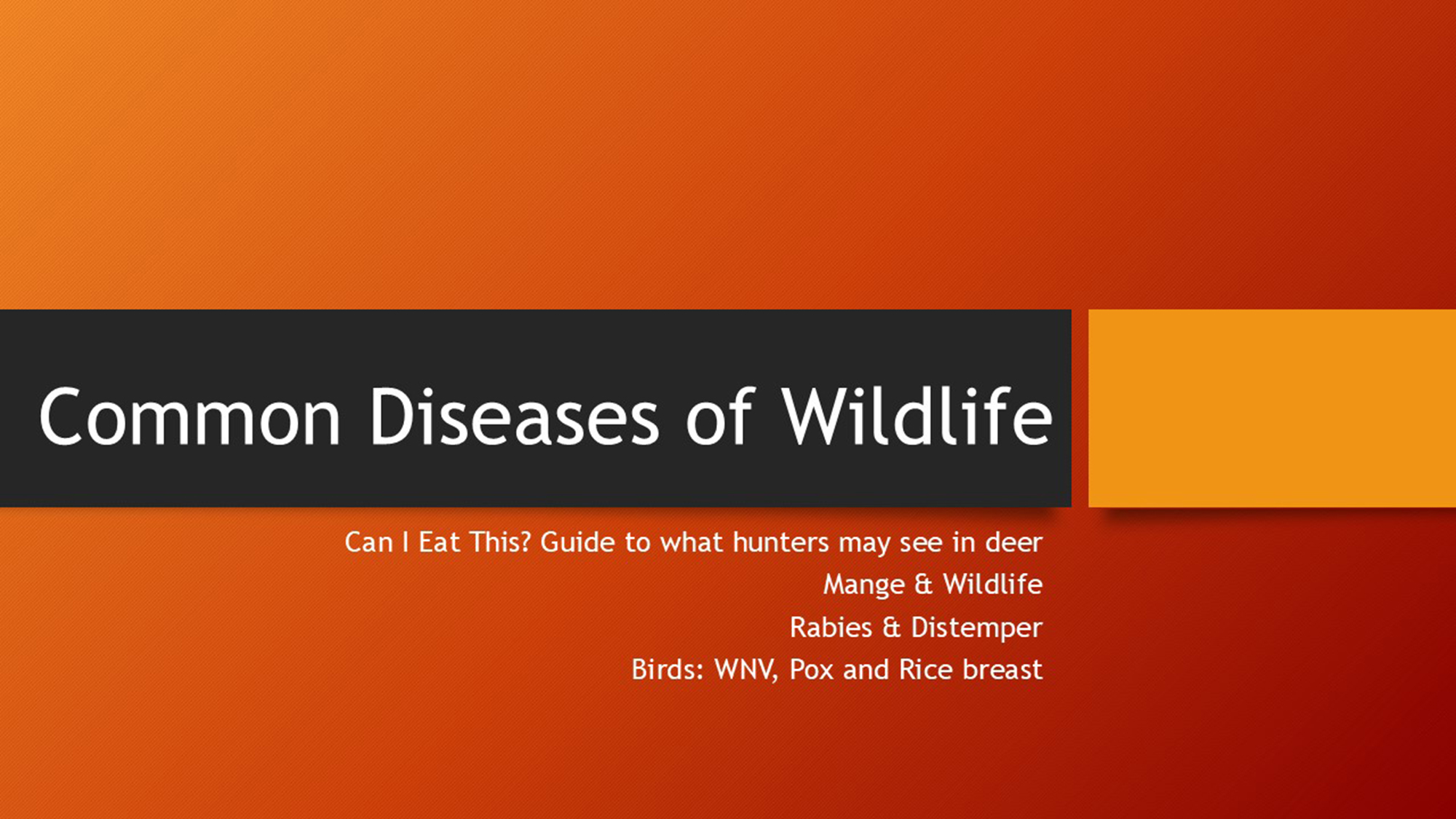 - “Can I eat that?” Common diseases hunters see in deer (Kevin Hynes, DEC)