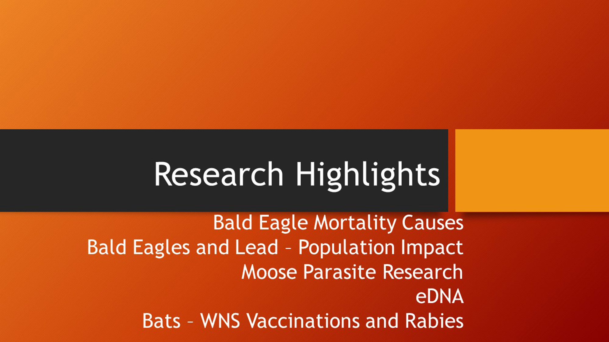 - Bats – WNS vaccine update & Rabies (Rachel Abbott, CWHL)