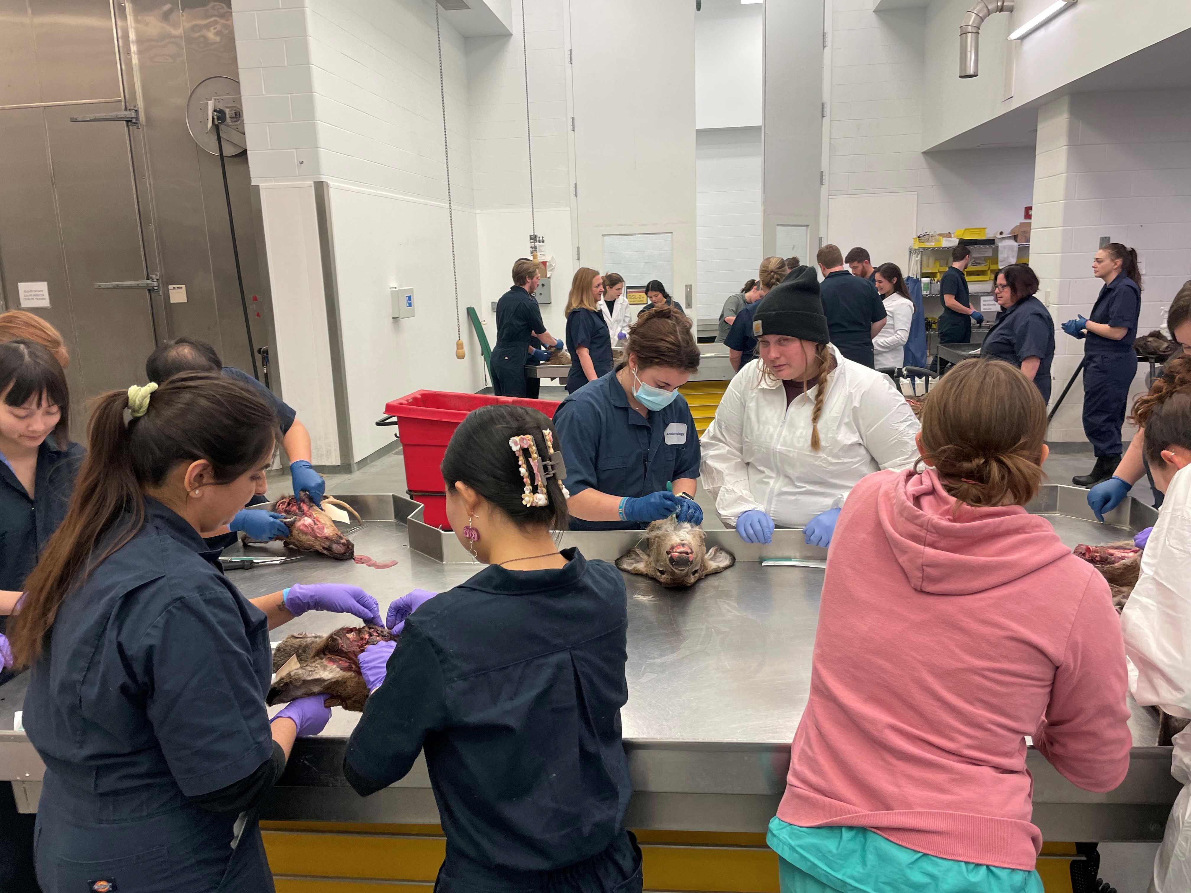 We offer a range of training opportunities for students interested in pursuing careers in wildlife health. For example, Dr. Schuler hosts an annual lecture and wet lab on chronic wasting disease (CWD), in which students learn to age deer by examining tooth wear and replacement, extract CWD samples, and examine the brain/skull for Parelaphostrongylus tenuis (brainworm). Dr. Bloodgood hosts a marine mammal necropsy workshop annually, providing hands-on instruction in clinical techniques and necropsy methods for pinnipeds and cetaceans.